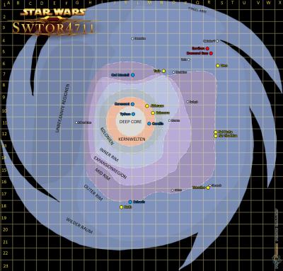 Eine der bestehenden Universumskarten, die eigens für die bislang bekannten Planeten von SW:TOR modifiziert wurde.